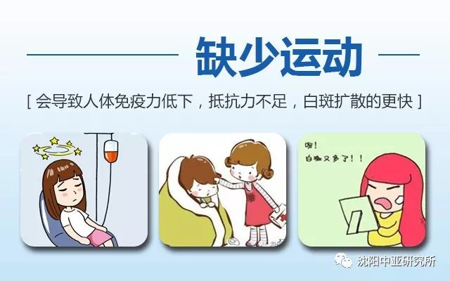 白癜风患者本身体质较差,所以一定要经常锻炼,避免整天待在房间里懒散不动,否则很容易使白斑病情加重。所以白癜风患者应该经常锻炼,提高自身抵抗力与免疫力,但是切忌激烈运动,可以先从散步开始,逐渐增加运动量,只要长期坚持你就会发现,不仅抵抗力强了,免疫力也会提高,对白癜风的治疗大有益处。